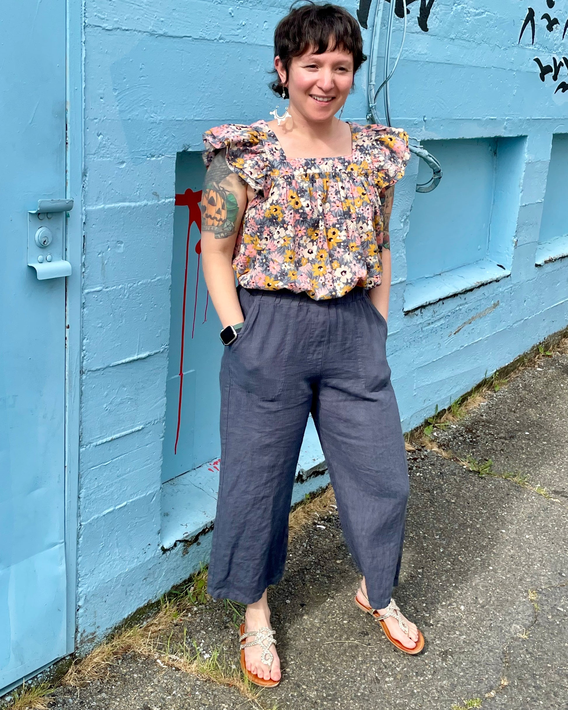 Bonnie is wearing the Small. She is 5'1, 127 lbs.