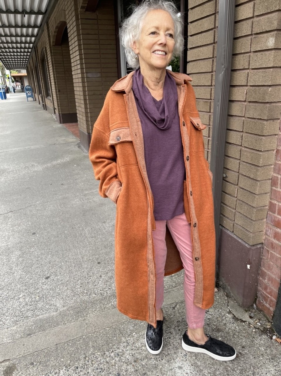 Shown here with the Long Cozy Shacket from Oli & Hali.