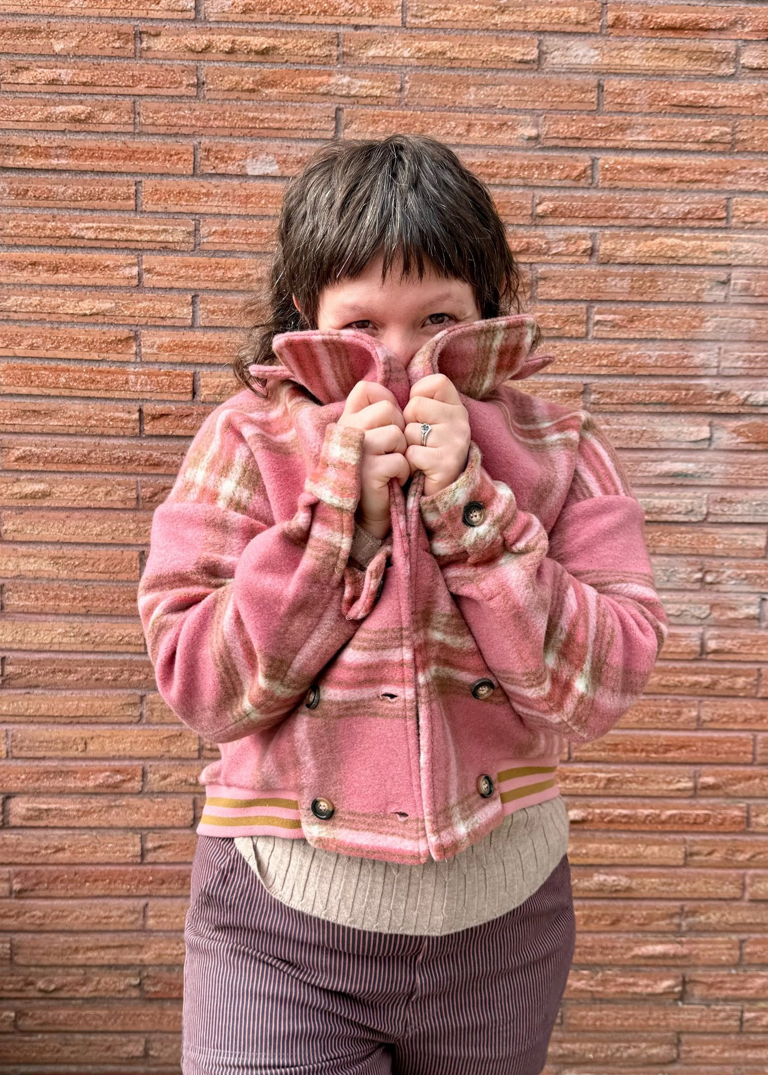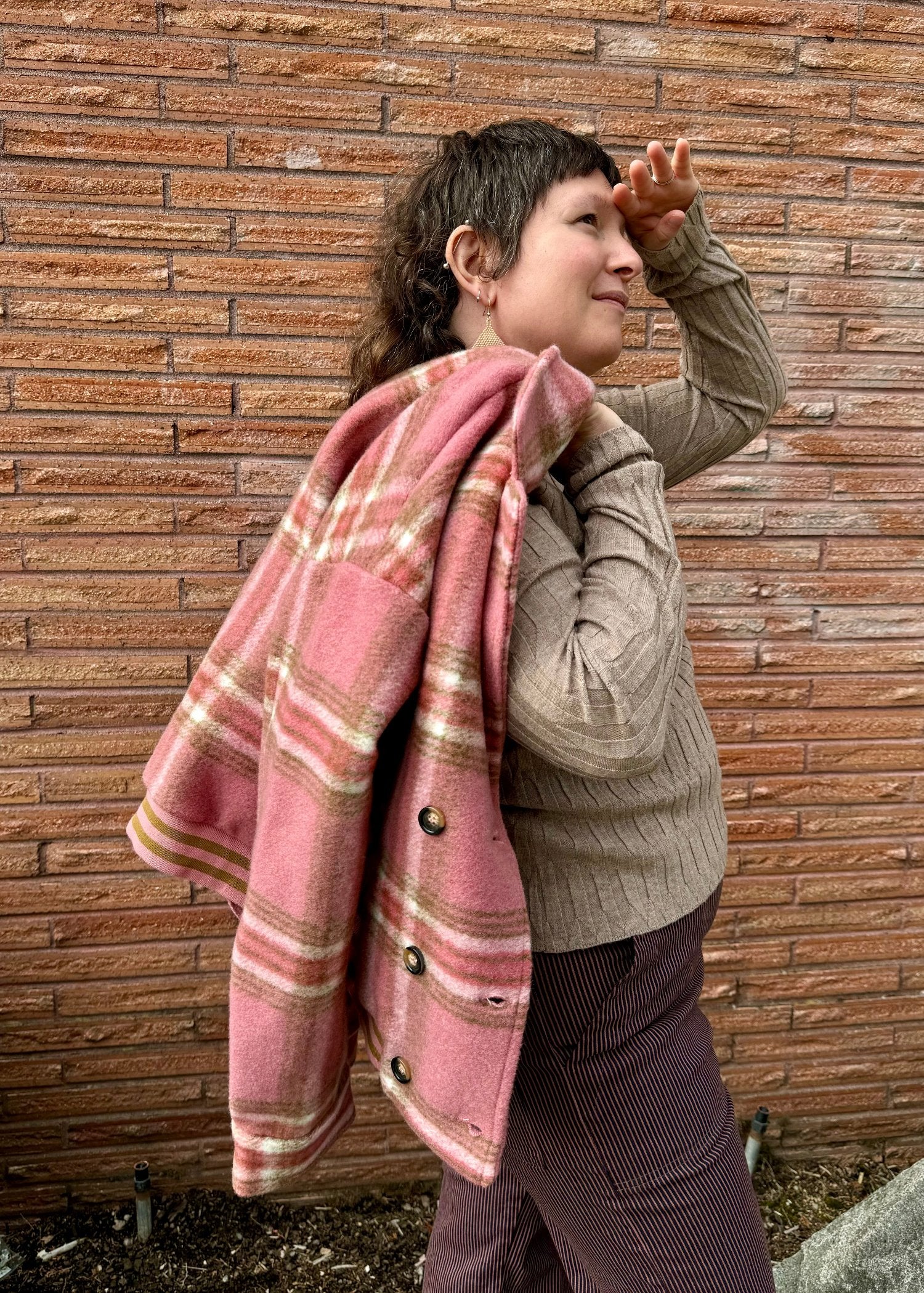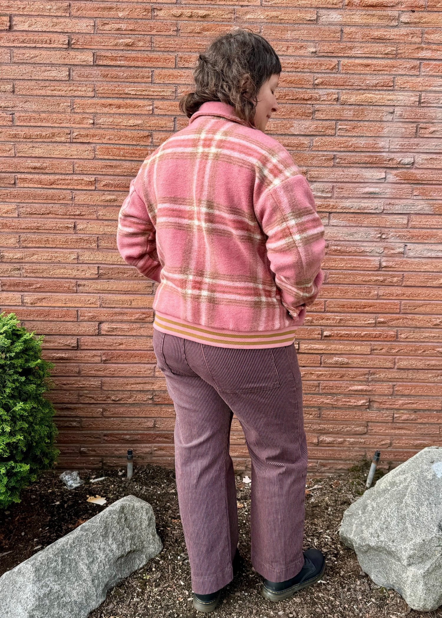 This berry-toned plaid jacket will keep you both warm and looking stylish. It boasts a double-breasted front, side pockets, and a charming striped hem. Embrace the perfect blend of timeless plaid in a classic silhouette with just a smidge of sporty flavor - trust us, it's a must-have! Bonnie is sporting this mega cute coat with the Daza Top and New Smithy Pant.
